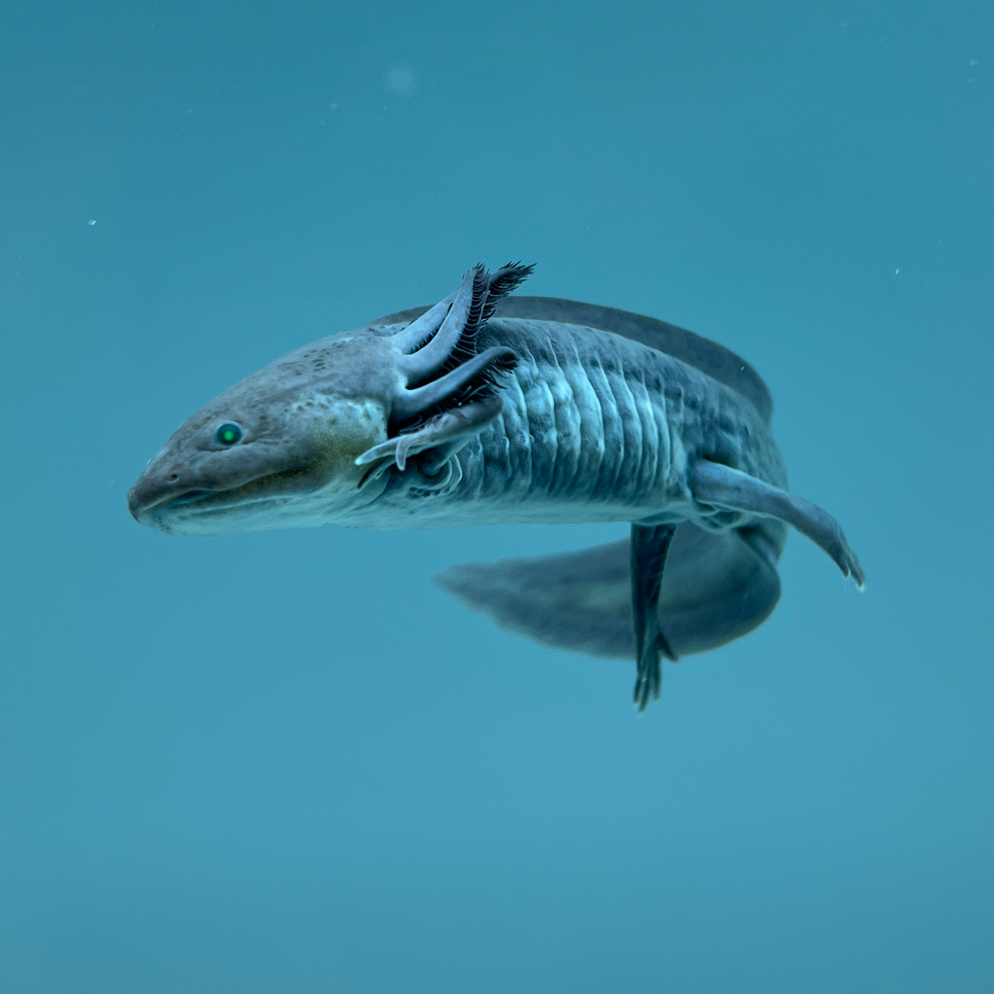 - GFP Expression: The integrated Green Fluorescent Protein causes the eyes to glow a vivid green under a blue or UV light source. In some individuals, the gill filaments may also show fluorescence. This isn’t paint or dye; it’s a heritable genetic trait.